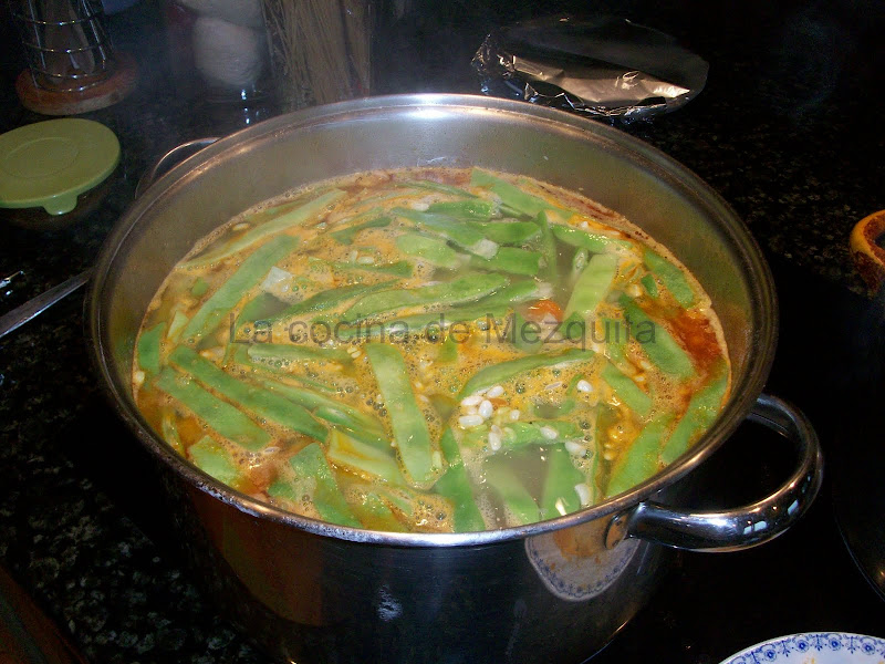 A las dos horas añadiremos las judías que tendremos limpias y a las que les habremos quitado los bordes.