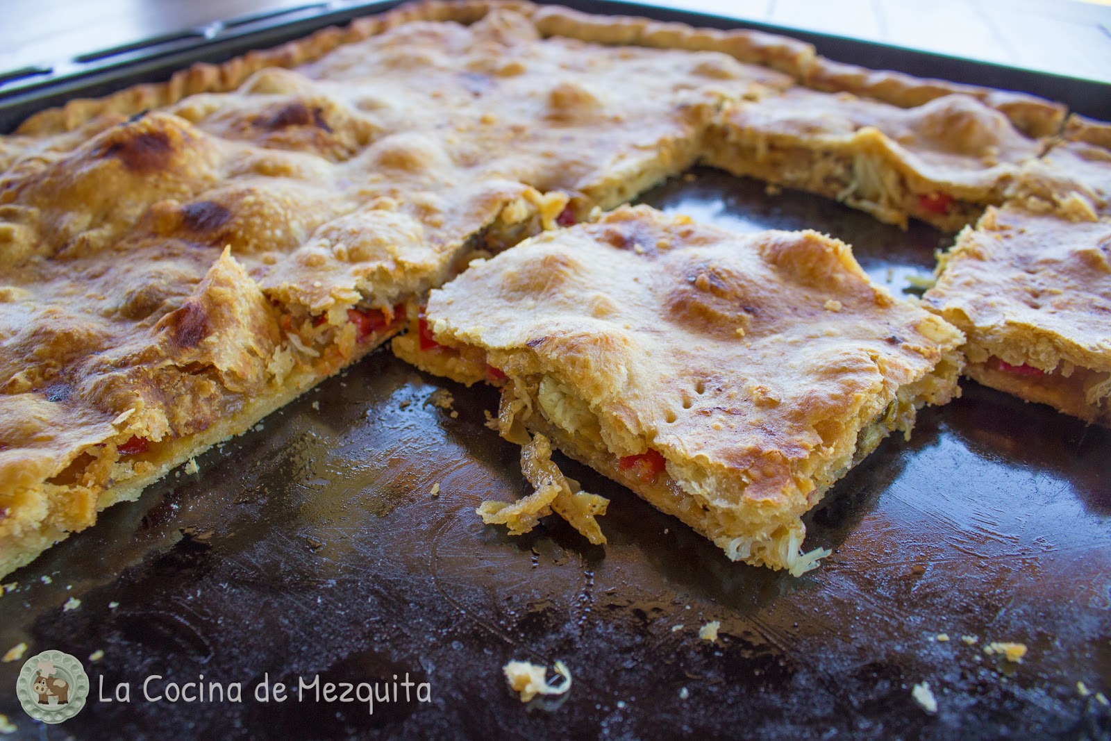 Tengo que deciros que hice un montón de descubrimientos ese día; conservas, vinos, quesos…. Pero la estrella fue sin duda la empanada que preparó la mujer de Esteban. Era finita, crujiente, sabrosa…. Es de las mejores masas que he probado en mi vida, así que Carmen Albo, de Guisándome la vida, le pidió la receta y la compartió conmigo…. Y yo en cuanto tuve un momento me puse manos a la obra….