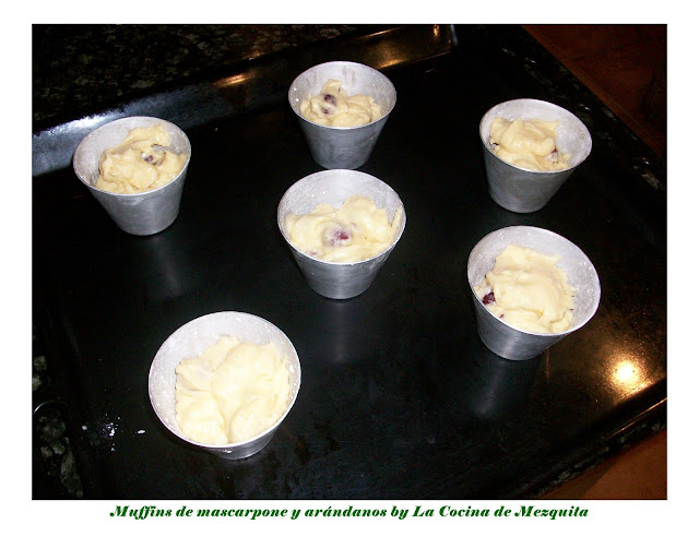 El caso es que no me hizo falta bucear, porque dos o tres semanas más tarde, a Espe le dio por publicar en su blog una receta que se puso automaticamente de primera en mi lista de deberes: «Muffins de arándanos y queso«….. Perfecto.