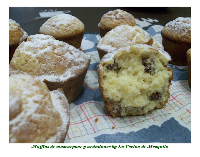 Por lo demás, vamos con tus muffins; veo que te han salido de cine. ¡¡qué sugerentes que son!!. Ya me he quedado con la copla de que a la hora de preparar los muffins lo seco y lo líquido debe de mezclarse y no batirse, y que al final es algo sencillo de hacer y muy resultón. Siempre que los veo me encantan, y estos tuyos con esos arándanos deshidratados les convierten en deliciosos.
