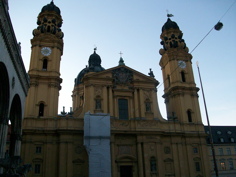 Caminando por Munich nos encontramos la Theatinerkirche, o iglesia de San Cayetano, que fue con diferencia, la que más nos gustó de Munich. Por fuera no parece gran cosa, además el color a mi me espantó tanto que entré dispuesta a que no me gustase por dentro…. pero tuve que rendirme a lo que es. No os puedo enseñar fotos del interior porque está prohibido hacerlas en la mayor parte de las iglesias muniquenses…. pero os animo a que la visiteis si vais a Munich.