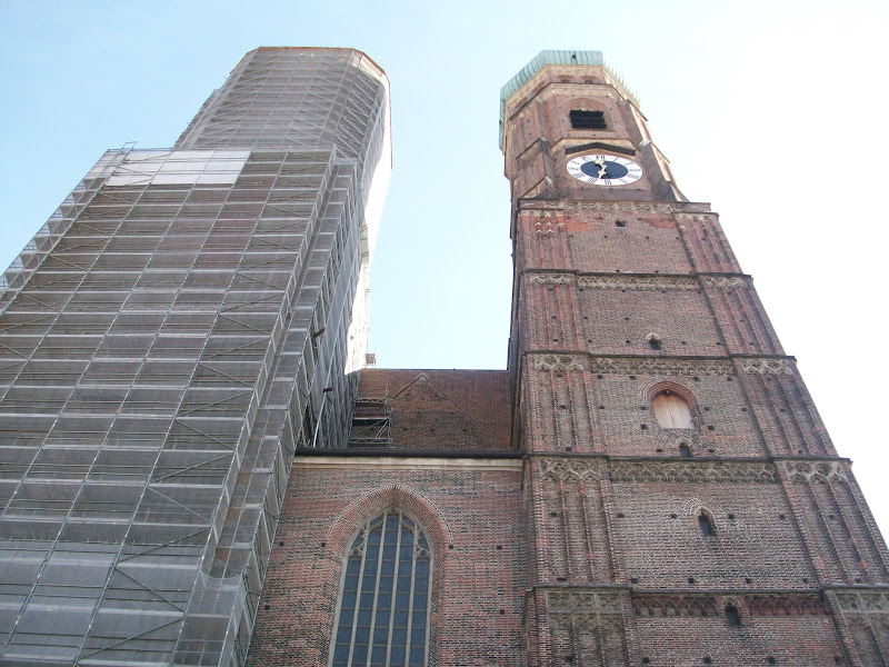 Además de visitar casi todo lo que ya habíamos visto el día anterior también estuvimos en la catedral, la Frauenkirche. La catedral católica de Munich empezó a construirse en el 1468 y se consagró en el 1494. Aunque las torres que veis no se terminaron hasta 1525. Es curioso que la altura de las torres es de 99 metros, para adaptarse a una ley de la ciudad que prohibía cualquier edificación por encima de los 100 metros (los alemanes sí que saben construir). Además una torre es 12 cm mayor que la otra… aunque por más que lo intenté… no pude saber cual… jajajaja.