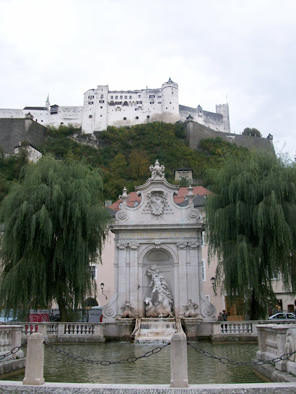 En la siguiente foto podeis ver una de las plazas de Salzburgo con la fortaleza arriba en lo alto.