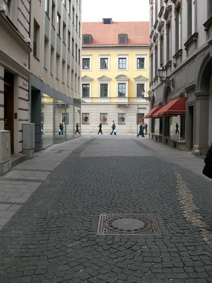 Una de las cosas que más me gustó del tour fue esta calle: la calle de los tramposos. Hitler, al que en adelante nombraré como mierdi-enano-con-bigote, levantó un monumento a sus generales de policía muertos en un atentado (fallido) contra él en Munich. Por supuesto, el muy enfermo no se conformó con levantar el monumento, sino que obligó a toda la población a pararse frente a él y hacer el saludo nazi.