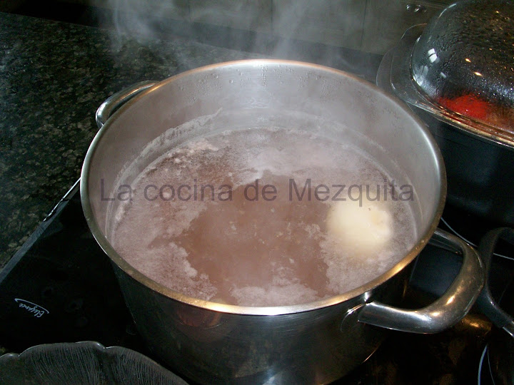 Una vez cocido retiramos del fuego, tapamos la cazuela y se deja reposar unos 15 minutos para evitar que se caiga la piel.