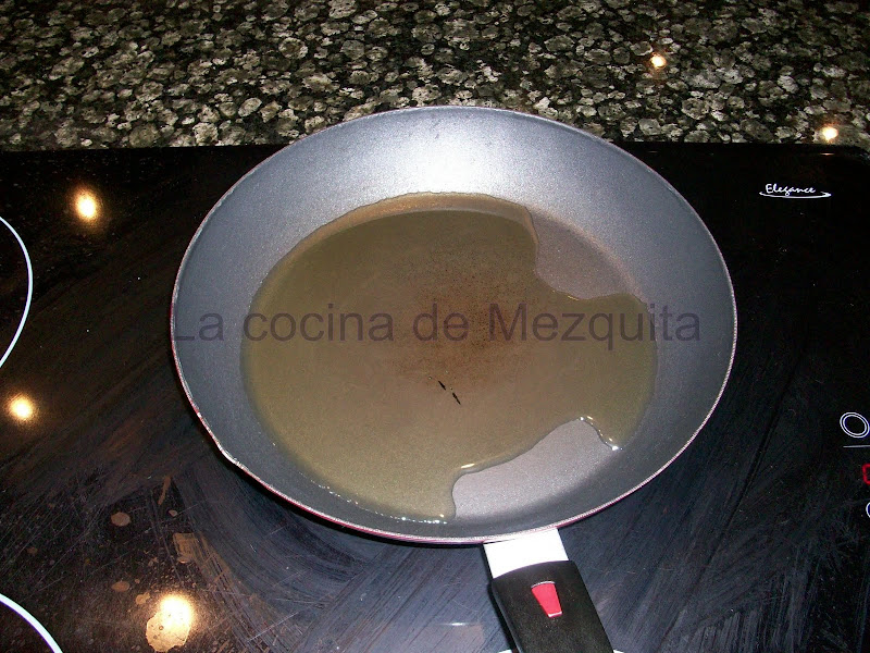 Ponemos las 3 cucharadas de aceite en una sartén y la ponemos a calentar (9 de 9 en mi vitro).