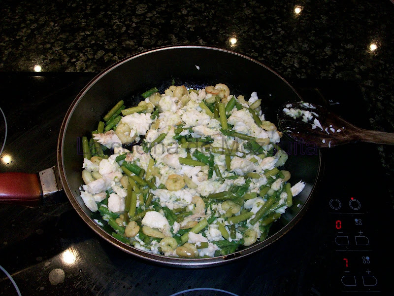 Ah!!!! pero entonces pasé por la sección de congelados y vi las bolsas de revueltos de trigueros, ajetes y gambas y se encendió la cara totalmente… como no se me había ocurrido!!!!