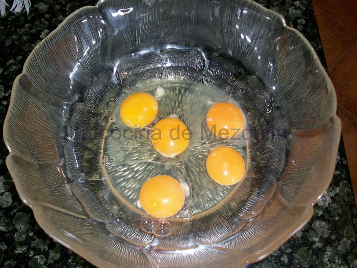 En un bol ponemos los 5 huevos.