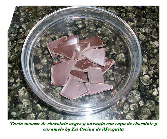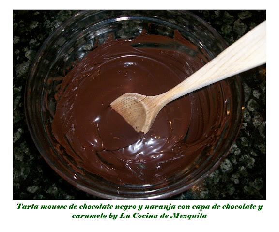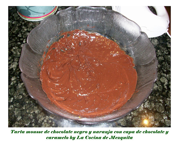 La mousse de chocolate negro a la naranja no me dio problemas, y una vez puesta en el molde y comprobado que ya no había fugas, supe que el postre iba a ser un éxito, teniendo en cuenta que había probado las dos capas antes de ponerlas en el molde y me habían encantado…..