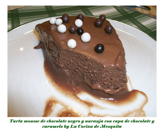 Para la próxima vez he de aprender dos cositas: la primera sustituir mi molde desmontable por uno nuevo y bueno, que cierre BIEN. La segunda invertir las capas, ya que la de mousse de chocolate a la naranja cuaja mejor, y la de caramelo queda más cremosa, mejor dejar la de caramelo por arriba.