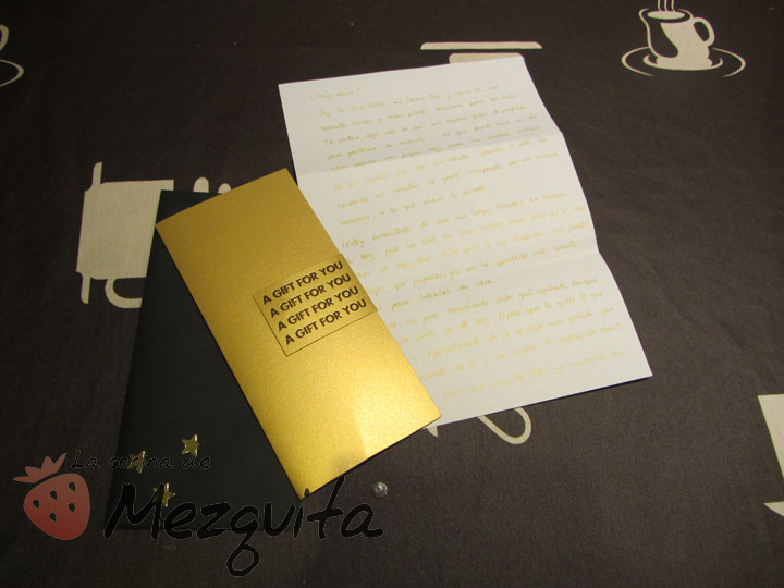 He de confesaros que la parte de la carta es la que más me gusta de este tipo de regalos, que la persona te cuente un poco de su vida, o que te explique porqué te ha regalado esto o lo otro… me apasiona, el saber que ha habido alguien que se ha molestado en leer tu blog para intentar conocerte y acertar con los regalos….